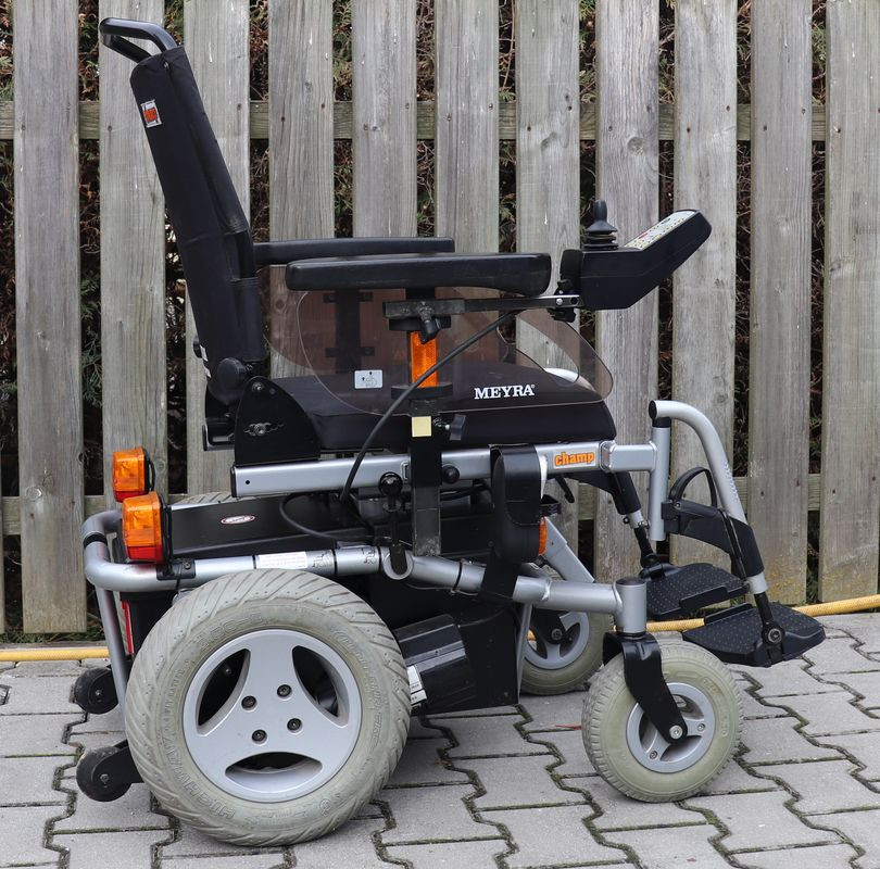 Elektrický invalidní vozík Meyra Champs liftem,Maximální rychlost 6 km/hod.