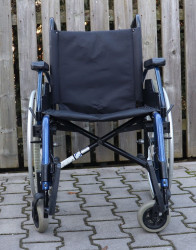 Mechanický invalidní vozík Meyra.Šíře sedu 48 cm.Hloubka sedu 41 cm.Výše zad 43 cm.Celková šíře 65 cm.Přední i zadní kola plná.Rychloupínáky.